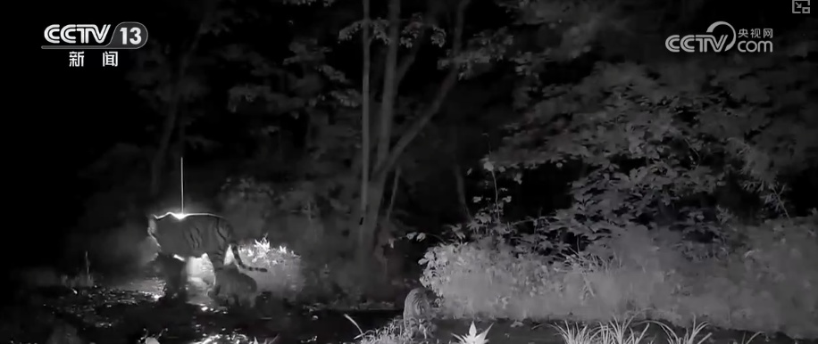 东北豺狼国度公园照应局珲春分局副局长于洪洵先容,这里是东北豺狼国度公园珲春辖区,前些天在这个有河水的地点,通过红外监测相机拍摄到了一组东北虎行为的画面,时辰大约是凌晨少许多,距离边境线大约15公里附近。因为老虎是夜行为物,此时应该是带着幼崽出来喝水和觅食。