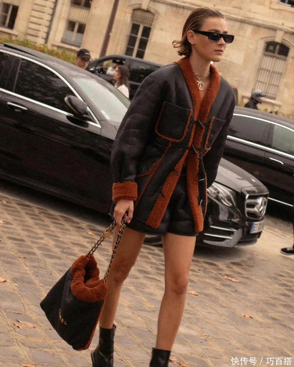 可能有姐妹会问了,秋冬天遴选加大包包外出会不会突兀,其实不会,一是有加肥加厚单品加捏,它的存在会相对合理,视觉比例特殊妥洽。