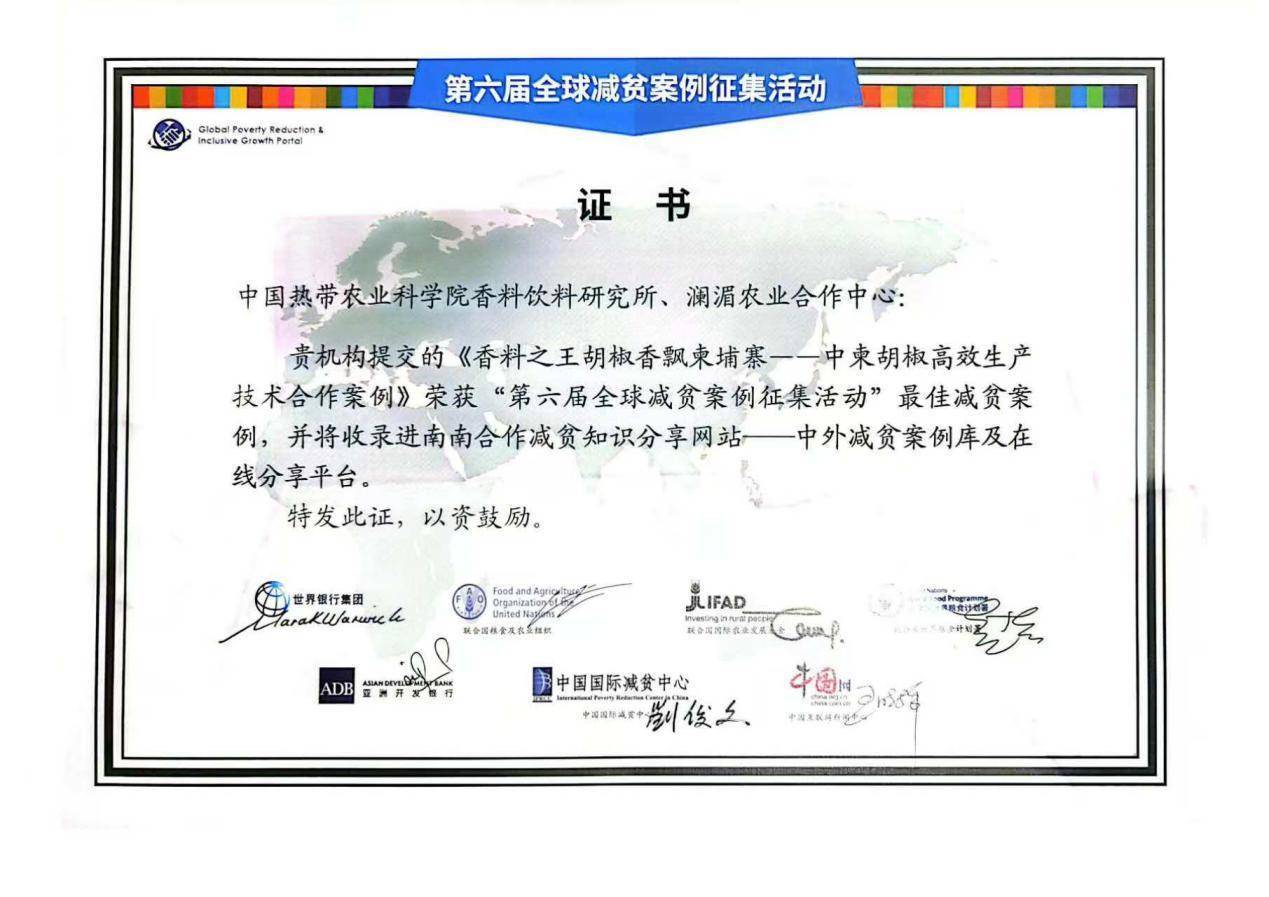 “香料之王胡椒香飘柬埔寨”模样入选第六届“人人减贫最好案例”。中国热科院香饮所供图